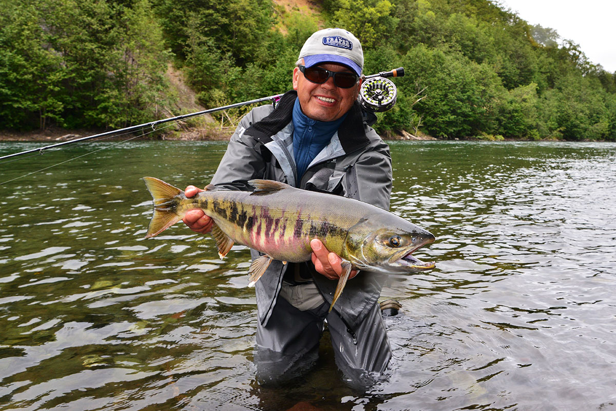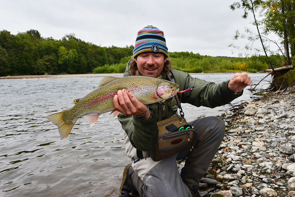 Jeśli chodzi o ryby innych gatunków – od ich holowania aż bolały ręce. Stosunkowo najtrudniej było złowić dużego tęczaka (powyżej 60 cm), ale dzięki naszym przewodnikom, którzy zabierali nas na długie wycieczki w dół rzeki, padło wiele olbrzymich ryb o masie w granicach 4 kilo. Łowiliśmy je na spinning, muchowe streamery, a także powierzchniowe myszy. Te ostatnie zrobiły prawdziwą furorę, a niektórzy muszkarze nastawili się po paru dniach już tylko na tę przynętę.