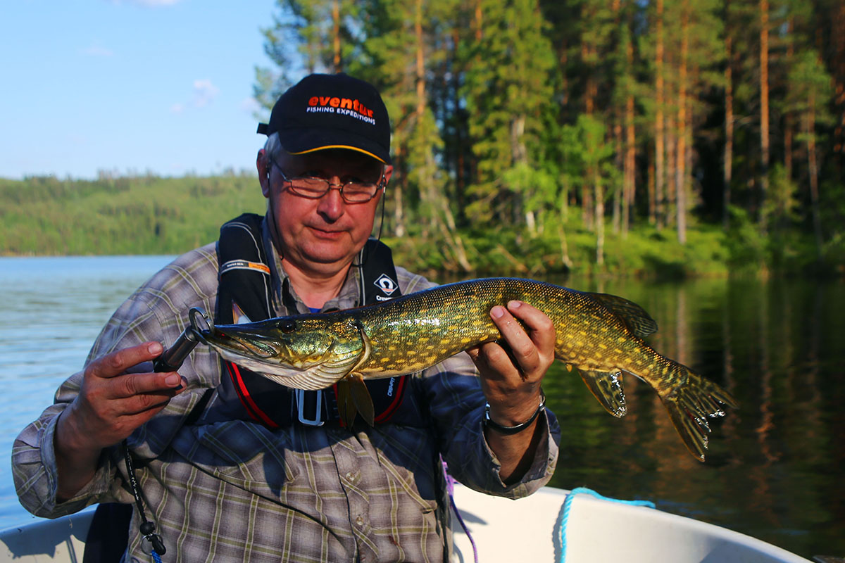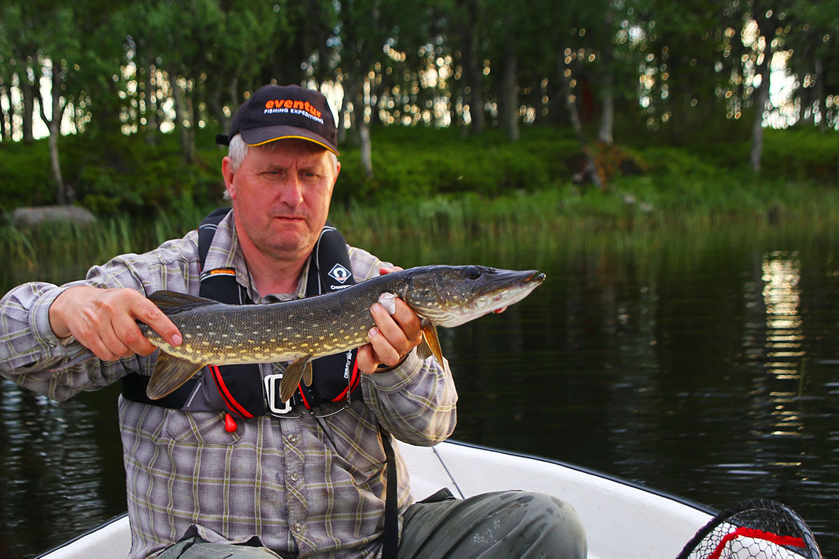 Ta pierwsza wyprawa, w której uczestniczył nasz kolega Piotr Motyka, wiodła do bliskiej Laponii (Blåviken) i była niezwykle udana wędkarsko oraz naznaczona przepiękną pogodą. Padła wielka ilość ryb, głównie szczupaków i okoni, choć temperatura wody w jeziorach bardziej zachęcała do kąpieli niż wędkowania. Jednak stara dobra Szwecja nie zawiodła. Piotr spotkał na promie kilka innych grup z Eventuru, które również znakomicie połowiły. Na przykład na łowiskach w rejonie Arvidsjaur w tydzień łupem ośmioosobowej grupy padły cztery metrowe szczupaki oraz setki mniejszych sztuk tego gatunku, a także wiele pięknych grubych okoni, ocierających się o 50 cm, a nawet te magiczną długość przekraczających. Panowie zgodnie określili ten wyjazd jako jeden z najlepszych w życiu pod względem wędkarskich wyników.