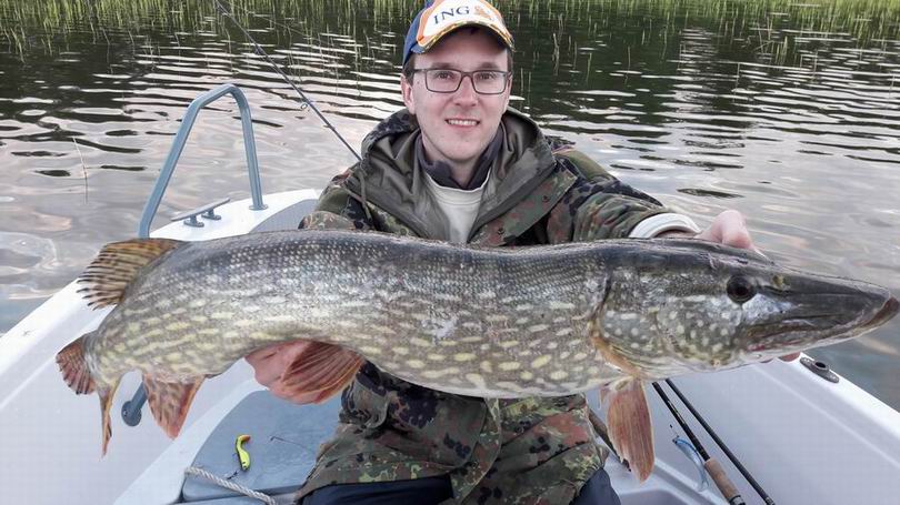 Z kolei w klasyfikacji na największą rybę wyprawy „rzutem na taśmę” zwyciężył nasz kolega Piotr Motyka, łowiąc w ostatniej godzinie zawodów 103-centymetrowego szczupaka. Ryba zaatakowała przy trzcinach niewielką gumową rybkę imitującą małego śledzia. Drugie miejsce zajął Przemek Paziewski (szczupak 90 cm), a trzecie ponownie Marcin Karbownik (szczupak 88 cm). Ryby brały znakomicie, pobudzone do żerowania przez liczne stada śledzi, które wpłynęły z otwartego morza do alandzkich zatok na tarło. Zachęcamy zatem do odwiedzania naszego nowego miejsca na Alandach (rejon Geta), gdzie znajdą Państwo dwa luksusowe domy z sauną oraz pięknie położoną przystań z doskonałymi łódkami (silniki 30 i 50 KM) i pomostem, z którego na spławik można łowić płocie i leszcze. Wszystko w lesie, na odludziu, wśród przepięknej przyrody. Przebywający w tym ośrodku wędkarze mogą łowić na bardzo dużym obszarze wody (łącznie trzy rejony licencyjne), co na Alandach stanowi ewenement. Zatem ryb na pewno nie zabraknie dla nikogo!