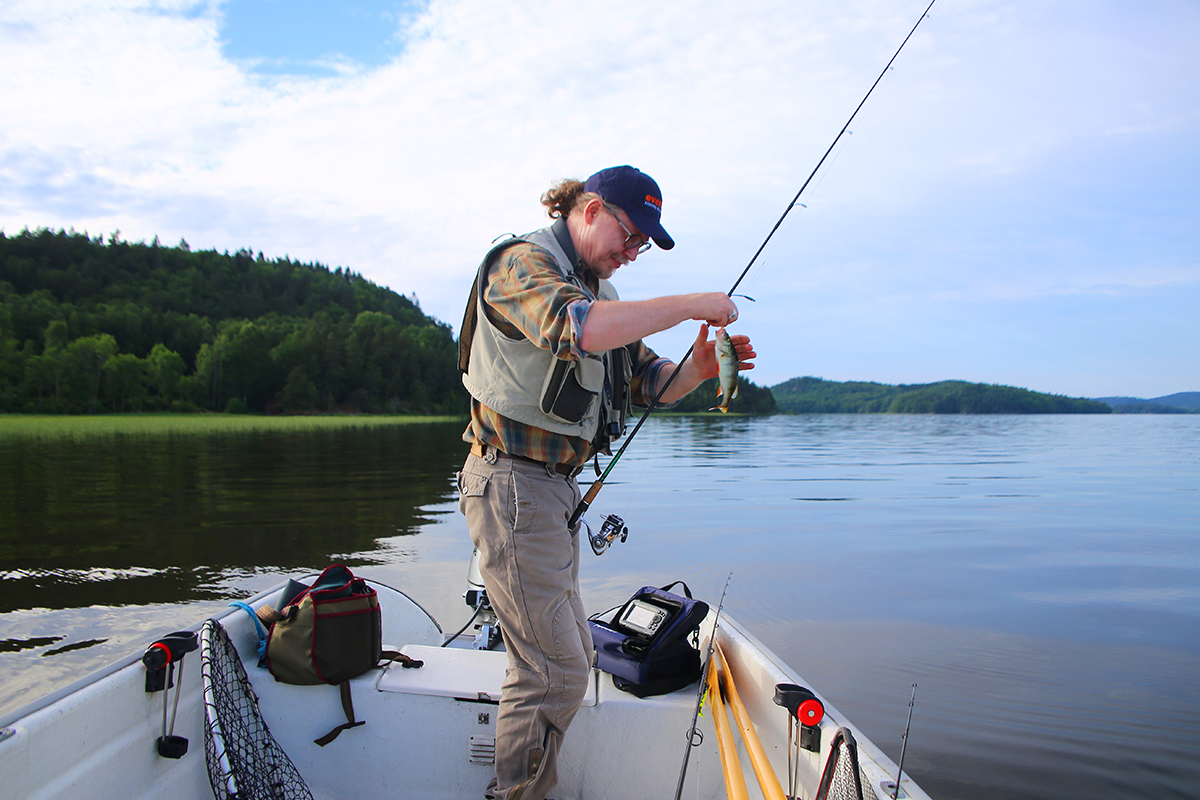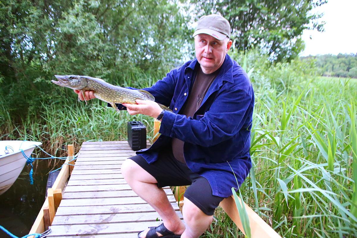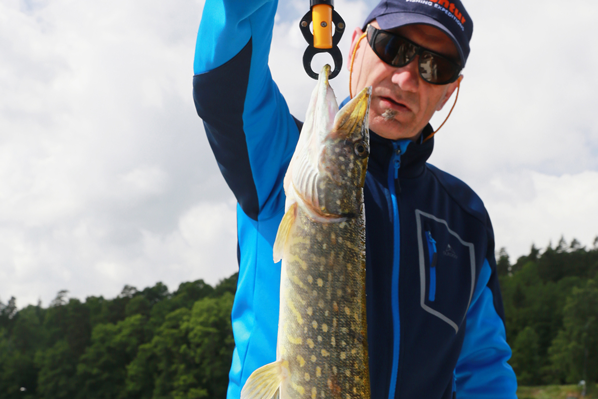 Jeśli chodzi o szczupaka, jest go nadal sporo. Wprawny wędkarz nie powinien mieć problemu z połowieniem zębatych drapieżników, choć czasem może utrudnić to pogoda (np. upały). Nam trafiły się właśnie dość wysokie temperatury, więc było nieco ciężej, jednak gdy tylko trochę się ochłodziło, od razu liczba brań wzrosła – zarówno na spinning, jak i trolling. Bardzo dużo na Mjörn klasycznych szczupakowych łąk podwodnej roślinności, na których dno schodzi nawet do 4-5 metrów głębokości. Warunki dla szczupaków są więc znakomite, dla spinningistów również…