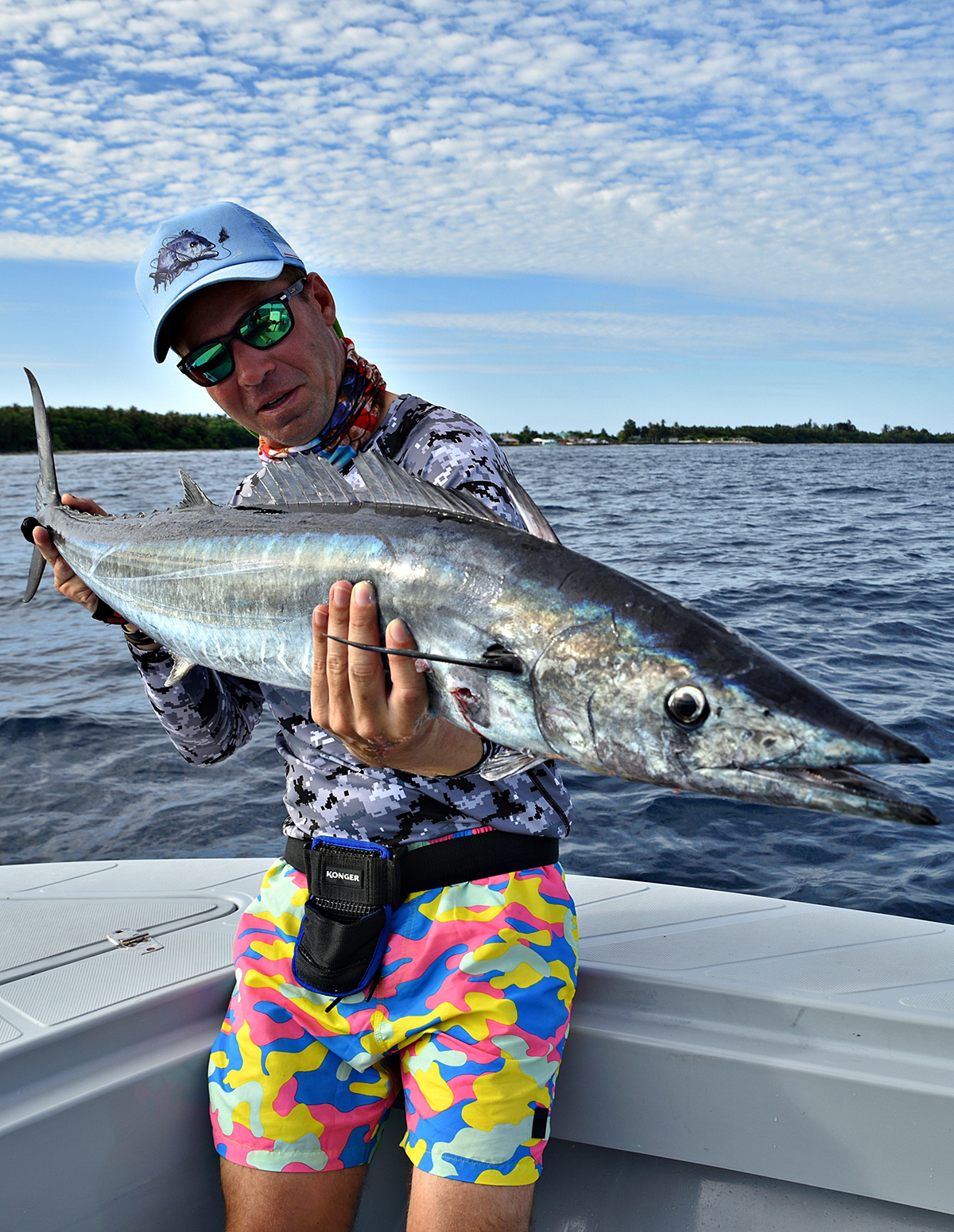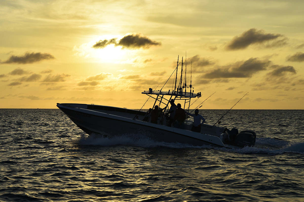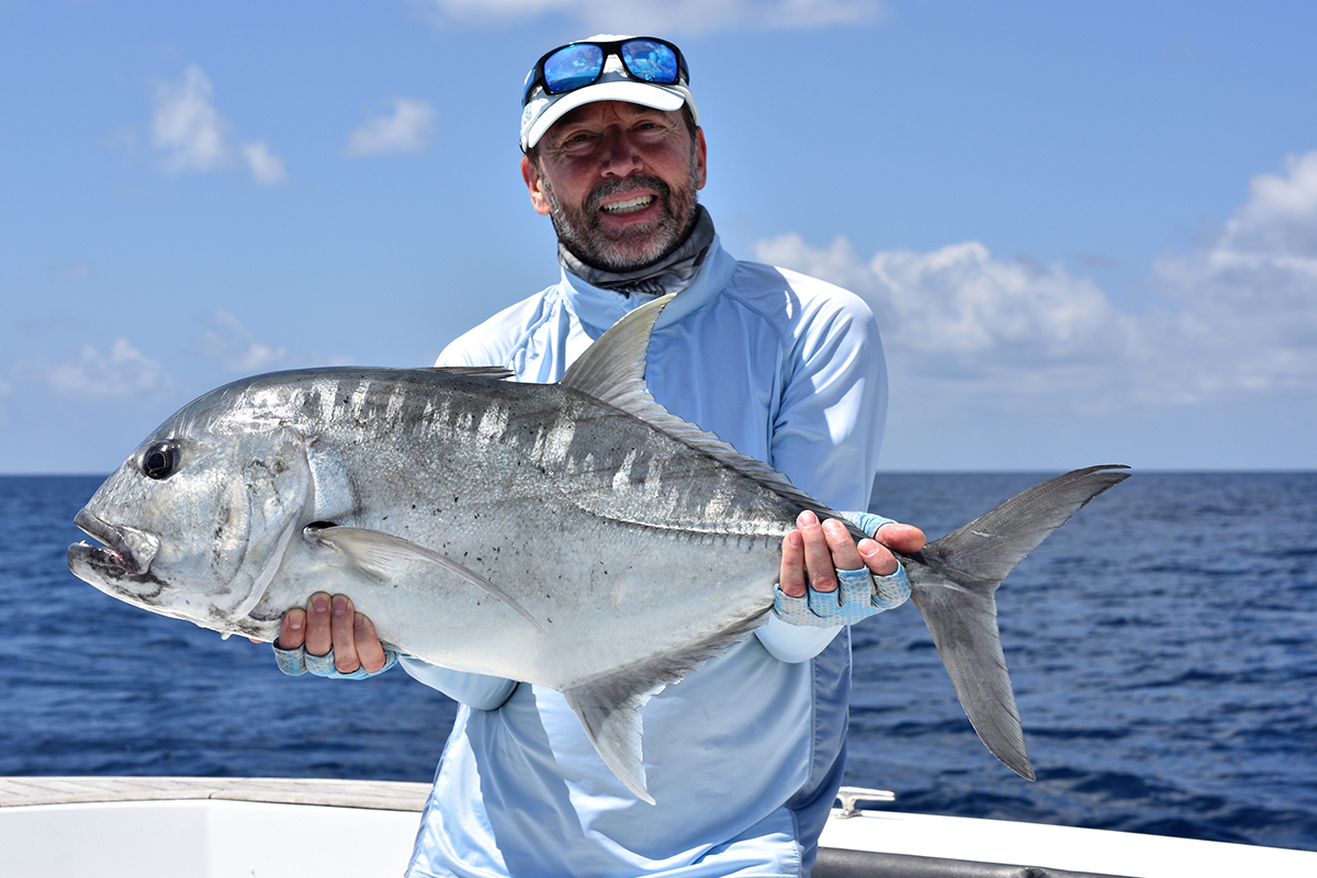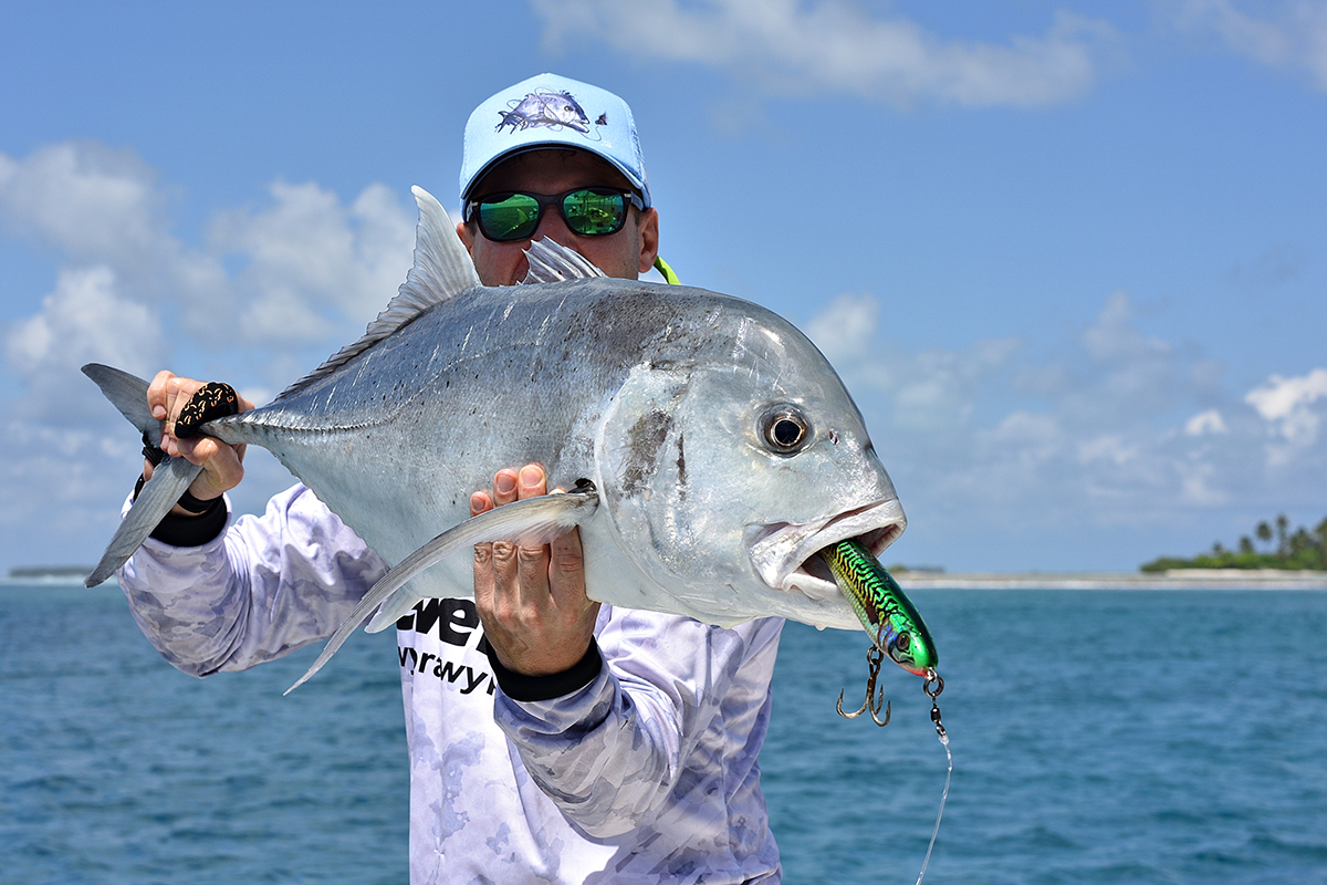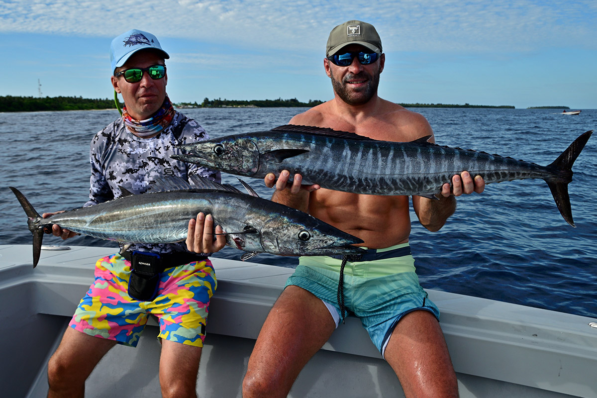 Co prawa intensywnie, ale bardzo krótko w ciągu dnia. Zazwyczaj większą aktywność drapieżników notowaliśmy w czasie przypływu jednak i tak była ona wyraźnie gorsza niż zazwyczaj na Malediwach. Średnio w ciągu dnia można było liczyć na 1-2 godziny niezłych brań. Pozostały czas na oceanie był praktycznie „martwy”, a ryby totalnie nie żerowały. Niestety nawet na najbardziej egzotycznych łowiskach na świecie takie sytuacje od czasu do czasu się zdarzają, a nam wędkarzom nie pozostaje nic innego jak to zaakceptować i mieć nadzieję, że następnym razem trafią się lepsze warunki. Łowiliśmy przede wszystkim na popping i tropikalny spinning. Trafiło się kilkanaście ładnych karanksów (GT), z których największy przekroczył 30 kg. Na pokładzie łodzi były też tuńczyki żółtopłetwe, ale raczej z tych mniejszych (do 10-12 kg). Mieliśmy na kijach kilka prawdziwych olbrzymów (szacujemy je na minimum 40-50 kg), ale tym razem zabrakło szczęścia. Te kolosy są nie do zatrzymania i wiele szczęścia/umiejętności potrzeba aby branie tuńczyka tej wielkości zakończyło się sukcesem.