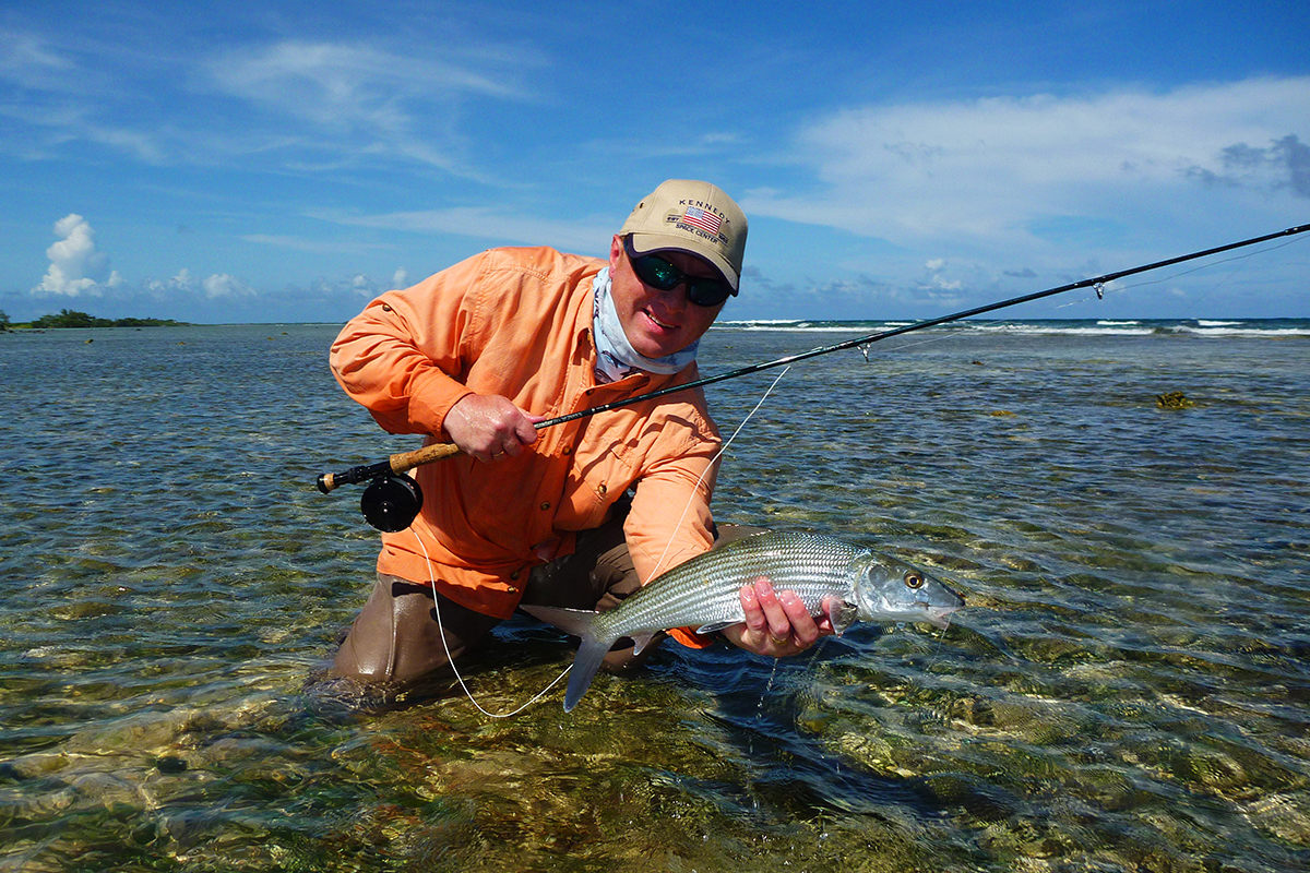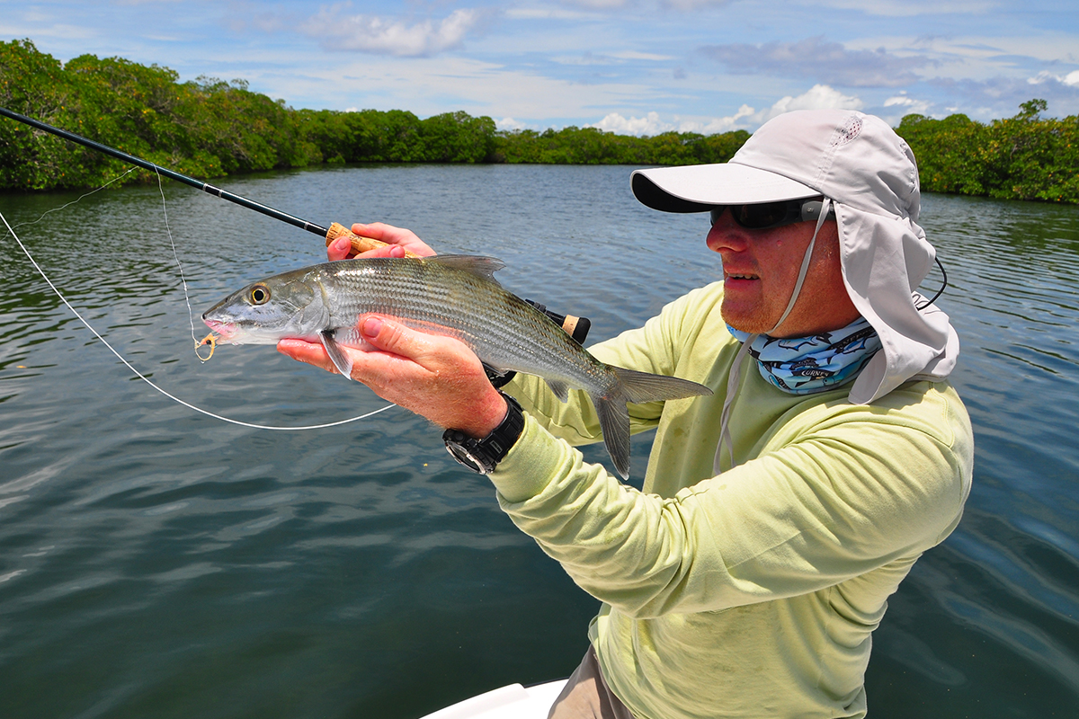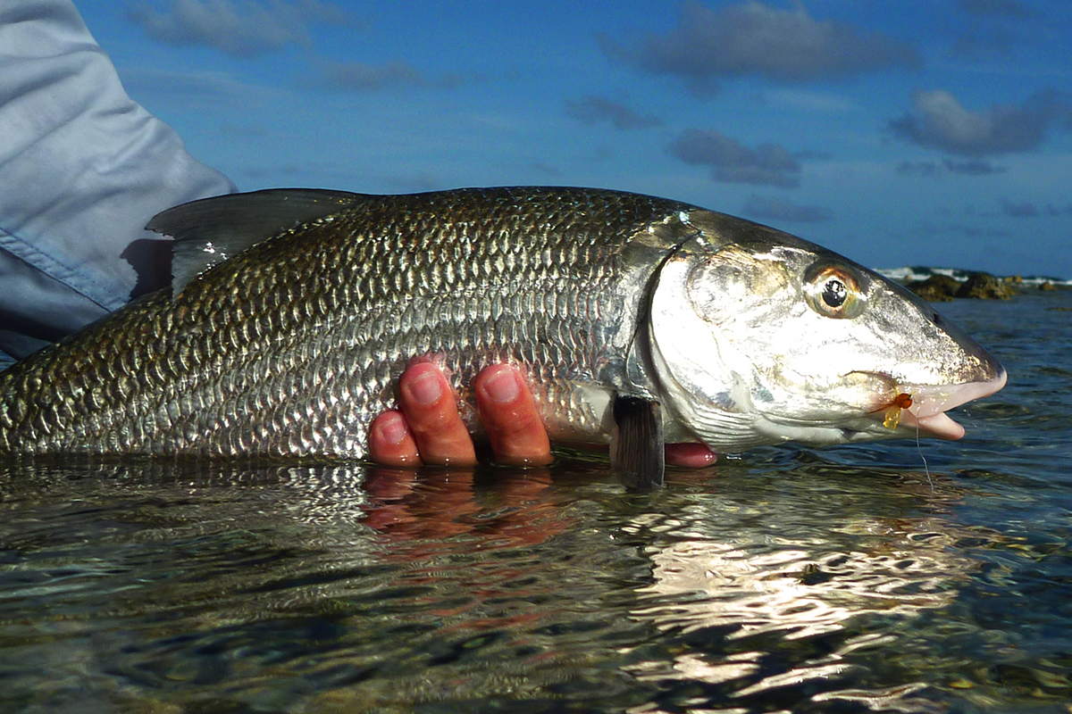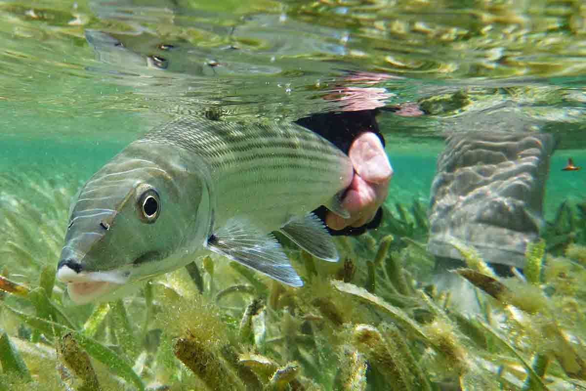 Szczególną rybą wśród poławianych na atolu Turneffe jest bonefish (czyli albula). Ryba ta dorasta maksymalnie do ok. 10 kg masy, ale najczęściej łowione są sztuki w przedziale 0,5-2 kg. Bonefishe to kultowe trofea dla muszkarzy. Poławia się je głównie na rozległych flatach, brodząc w towarzystwie wypatrującego ryby przewodnika. Bonefishe żerują w tzw. „szkółkach”, czyli dużych stadach jednego rocznika, jak i pojedynczo bądź w dwie czy trzy sztuki (wówczas są to zazwyczaj większe egzemplarze).