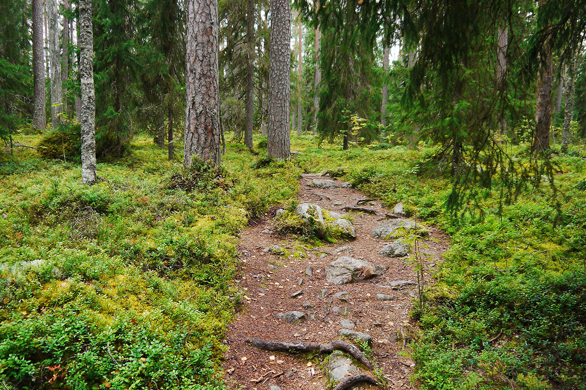 Buszowaliśmy tak po lesie prze trzy kolejne dni, jakby nie mogąc nacieszyć się do syta bogactwem leśnych skarbów. Nie każdy sezon bowiem darzy taką ilością grzybów, czasem przez kilka kolejnych lat można obejść się tylko smakiem. Z grzybowym szaleństwem przegrywały nawet ryby. Spacery po lesie dawały nam sporą porcję zdrowia i wielką przyjemność. Fińskie lasy są zresztą najpiękniejsze z wszystkich skandynawskich i najbardziej przypominają polskie. Nie w nich tylu kamieni, skał i dołów co w szwedzkich i norweskich, nie są też tak ciemne, gęste i tajemnicze jak tamte. Po gładkiej ściółce i mchu chodzi się znacznie wygodniej, bo nogi nie wpadają w liczne szczeliny pomiędzy gazami. Rosną w nich licznie jagody, czerwone borówki i żurawiny, a także piękne paprocie. Sporo też jest zwierzyny.