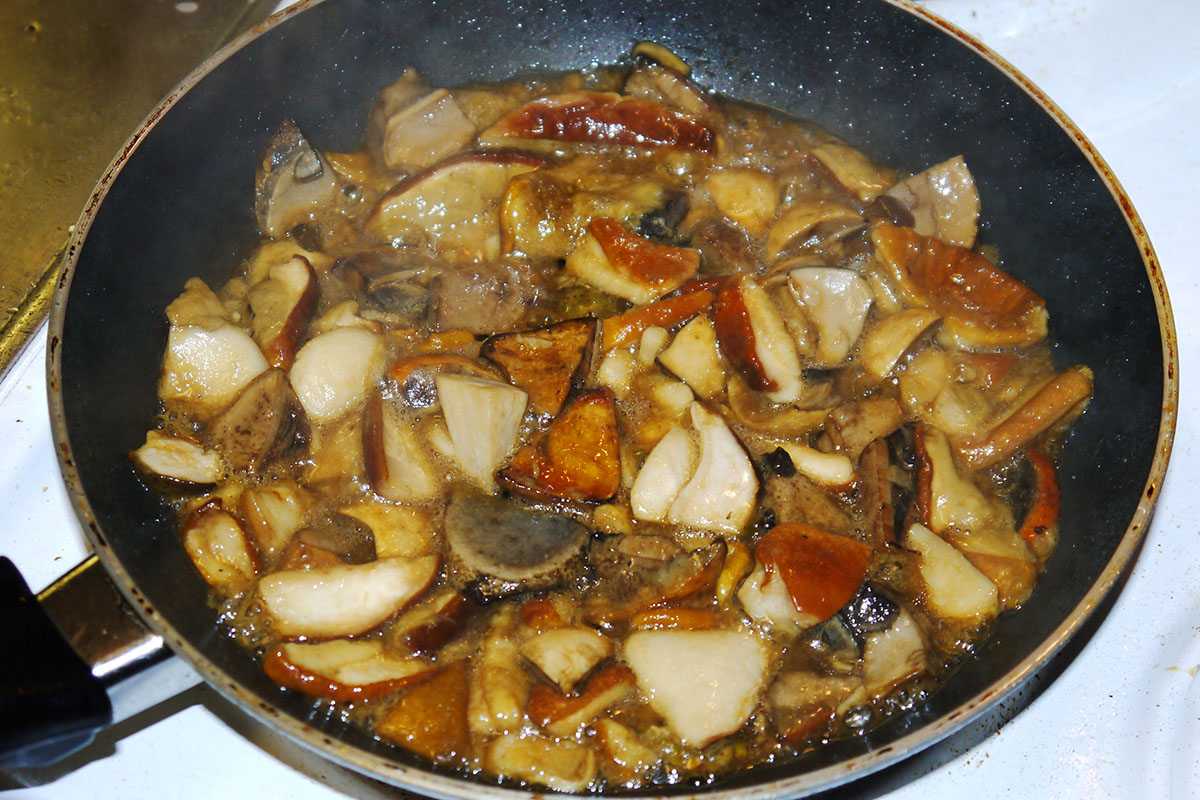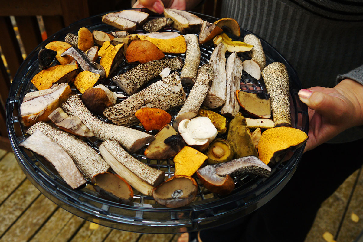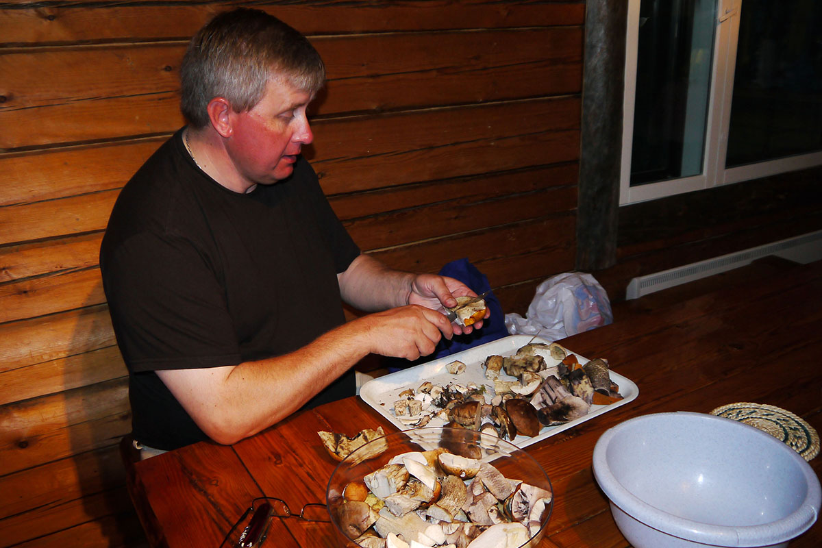 Codziennie raczyliśmy się wspaniałymi potrawami z uzbieranych grzybów. Przyrządzaliśmy je na różne sposoby – były więc grzyby duszone, była zupa grzybowa, grzybowy sos do mięsa, makaron z grzybami, były też smażone, poprószone tylko solą prawdziwki – największy chyba hit wyjazdu. Z czasem dla urozmaicenia zaczęliśmy zbierać też maślaki i kurki, które również weszły do naszego menu. Nadwyżki suszyliśmy w specjalnej, dostarczonej nam przez gospodynię suszarce i przygotowywaliśmy do zabrania do kraju.
