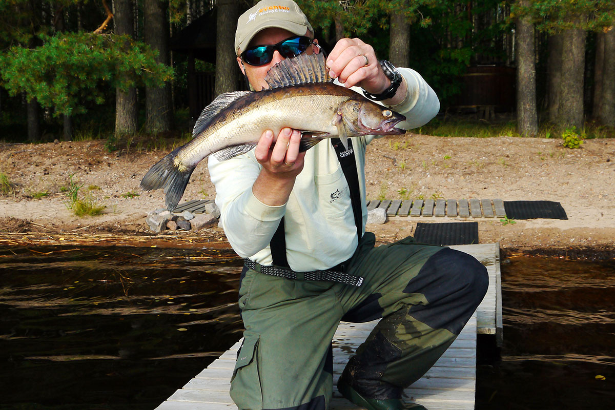 Jezioro Summanen, bo w nim łowiliśmy, jest jednym z ciekawszych zbiorników środkowej Finlandii, zasobnym głównie w sandacze. Piękną sztukę złowił tam kiedyś Grzesiek Zarębski – nasz mistrz spinningu. Ryby te żyją tam głównie na twardych blatach na głębokości od kilku do kilkunastu metrów, a także na szczytach i stokach podwodnych górek. Tam też je znaleźliśmy. Co ciekawe, mieliśmy także jeden dzień szczupakowy, kiedy drapieżniki te wyraźnie się „ruszyły”. Rzuty w kierunku trzcin przyniosły sporo brań, jednak bez sztuk okazowych. Przeważały pięćdziesiątaki i sześćdziesiątaki, może był z jeden siedemdziesiątak. W pozostałe dni szczupaki odzywały się tylko sporadycznie w miejscach typowo sandaczowych.