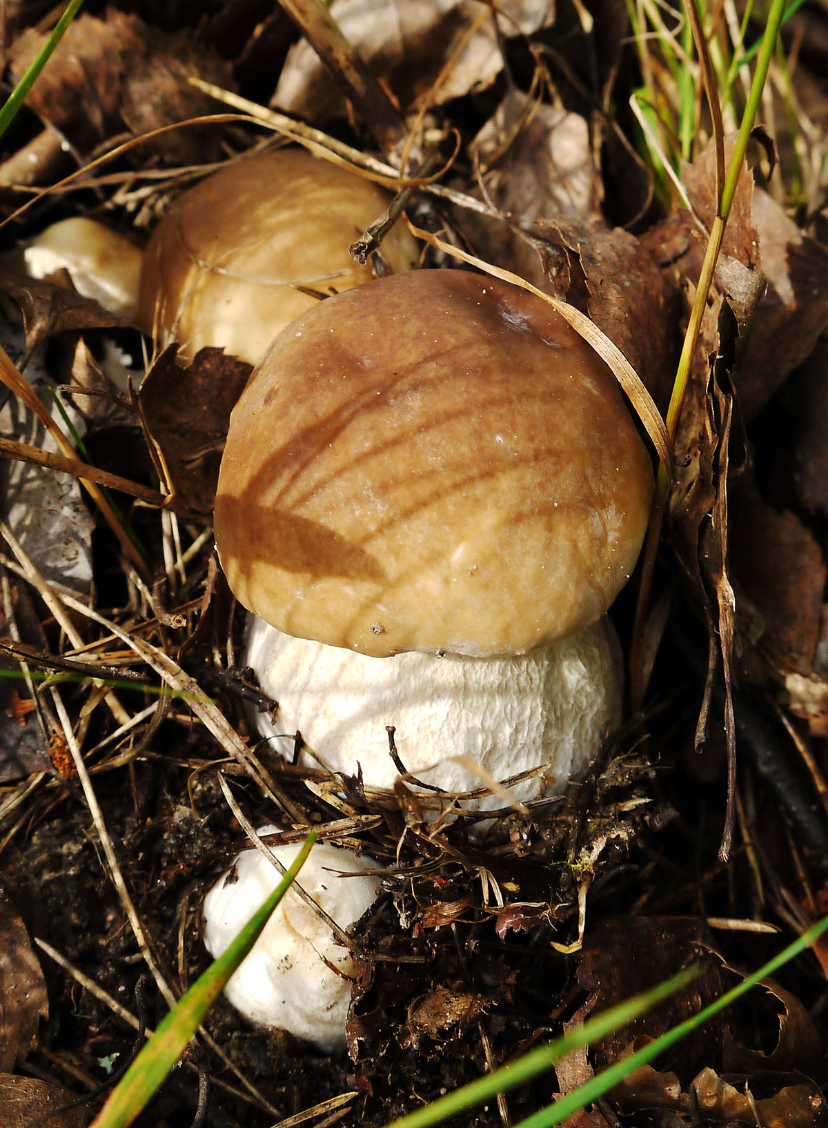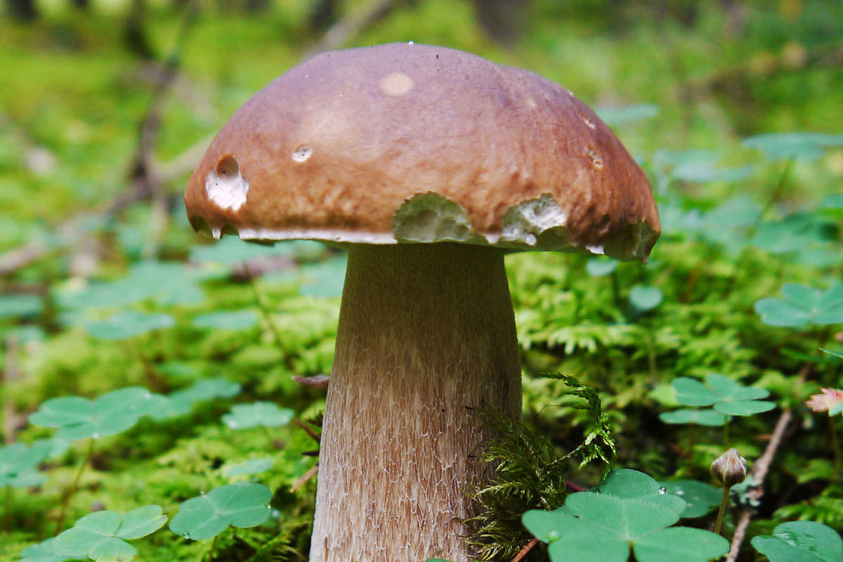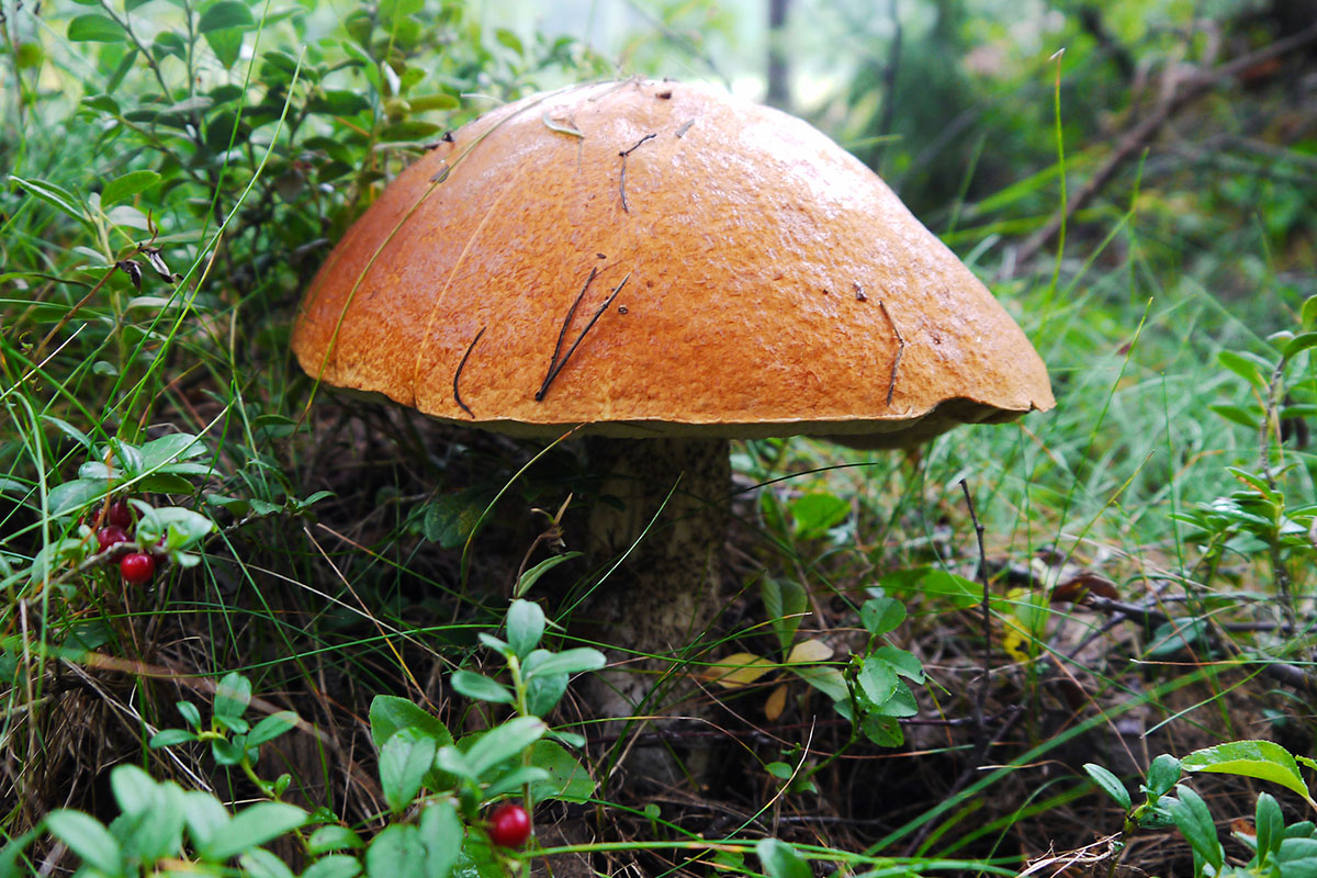 Po przybyciu na miejsce od razu zauważyliśmy kilkanaście dorodnych prawdziwków, rosnących przy samym wejściu do domu. Jednak nasi przyjaciele nie pozwolili nam się do nich zbliżać i pod żadnym pozorem zbierać, bo miały stanowić piękną ozdobę najbliższej okolicy w czasie naszego kilkudniowego pobytu. Niczym barwne i pachnące kwiaty rosnące na klombie pod oknem. Od dwóch dni obserwowali jak rosną i przywykli już do nich, jakby były częścią rodziny :-) Karnie posłuchaliśmy, choć ręce świerzbiły. Las jednak rozpoczynał się już kilka metrów od domu, od razu po rozpakowaniu bagaży wyruszyliśmy więc z Ignacym z koszykami w rękach na poszukiwanie leśnych okazów. To, co spotkało nas w lesie, przekroczyło najśmielsze oczekiwania. Grzybów były takie ilości, jakich jeszcze nie widziałem nigdy. W obliczu takiego bogactwa skupiliśmy się na tych najbardziej szlachetnych gatunkach, czyli prawdziwkach, czerwonych kozakach, borowikach sosnowych… Inne omijaliśmy, bo szkoda nam było miejsca w koszykach. Największe ilości grzybów rosły w tych miejscach, gdzie las sąsiadował z jeziorem. Na pewno sprzyjała temu większa niż gdzie indziej wilgotność. Tam można je było kosić…