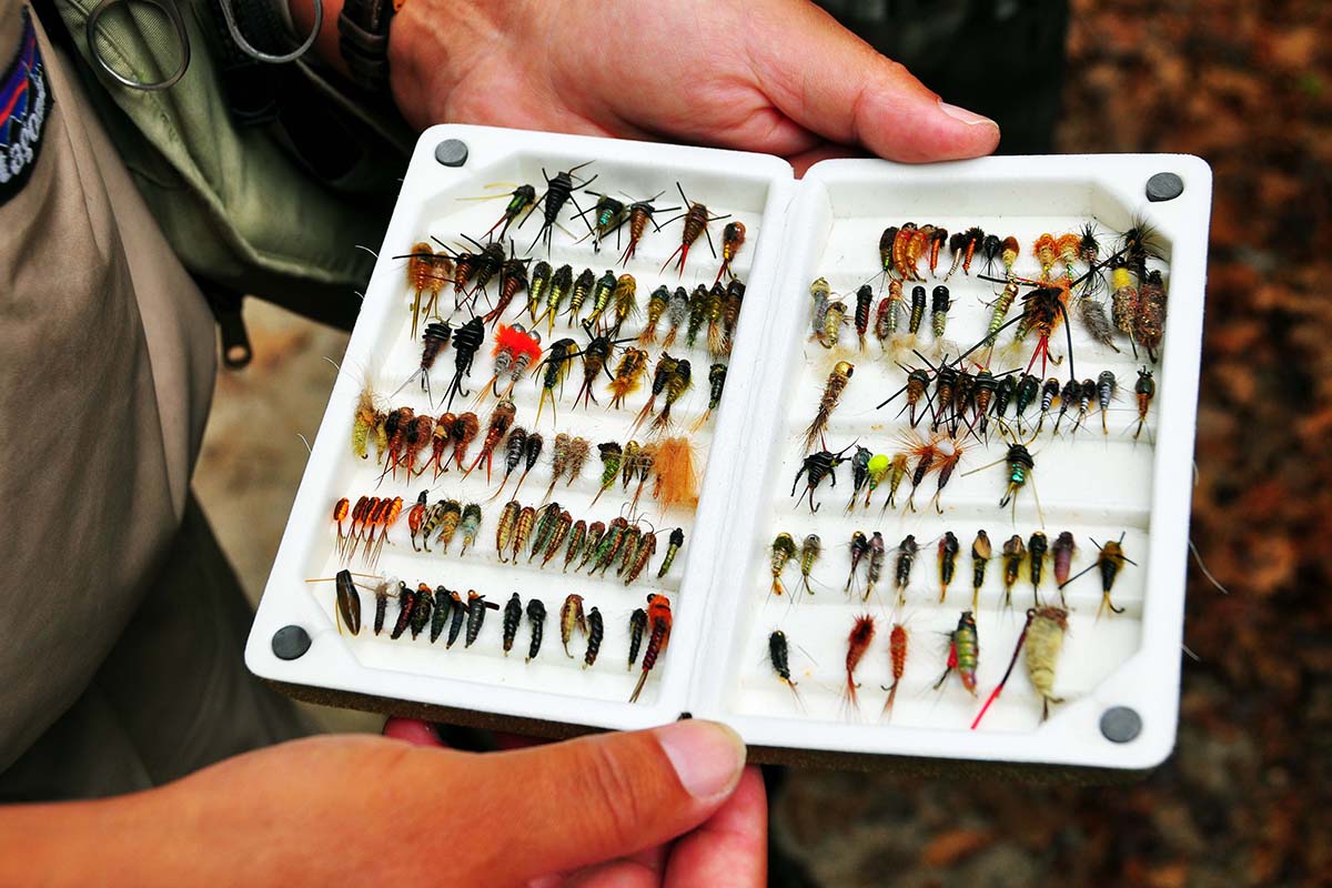 Przy połowie pstrągów tęczowych bardzo skuteczne są streamery i nimfy. Jeśli chodzi o pstrągi potokowe, bardzo dobrze reagują na suchą muchę, ale często również są do złowienia na mokrą muchę, nimfę czy szybko ściąganego streamera. Lipienie najlepiej łowić przy użyciu suchych much i nimf. Przynęty dopasowujemy przede wszystkim w zależności od pory roku i aktualnych upodobań ryb względem pobieranego pokarmu. Często również ważne są stan wody, jaj klarowność, a także warunki pogodowe i miejsca aktualnego przebywania ryb. Szczegółowe informacje na zapytanie. Na miejscu istnieje możliwość zakupu skutecznych rodzajów sztucznych much.