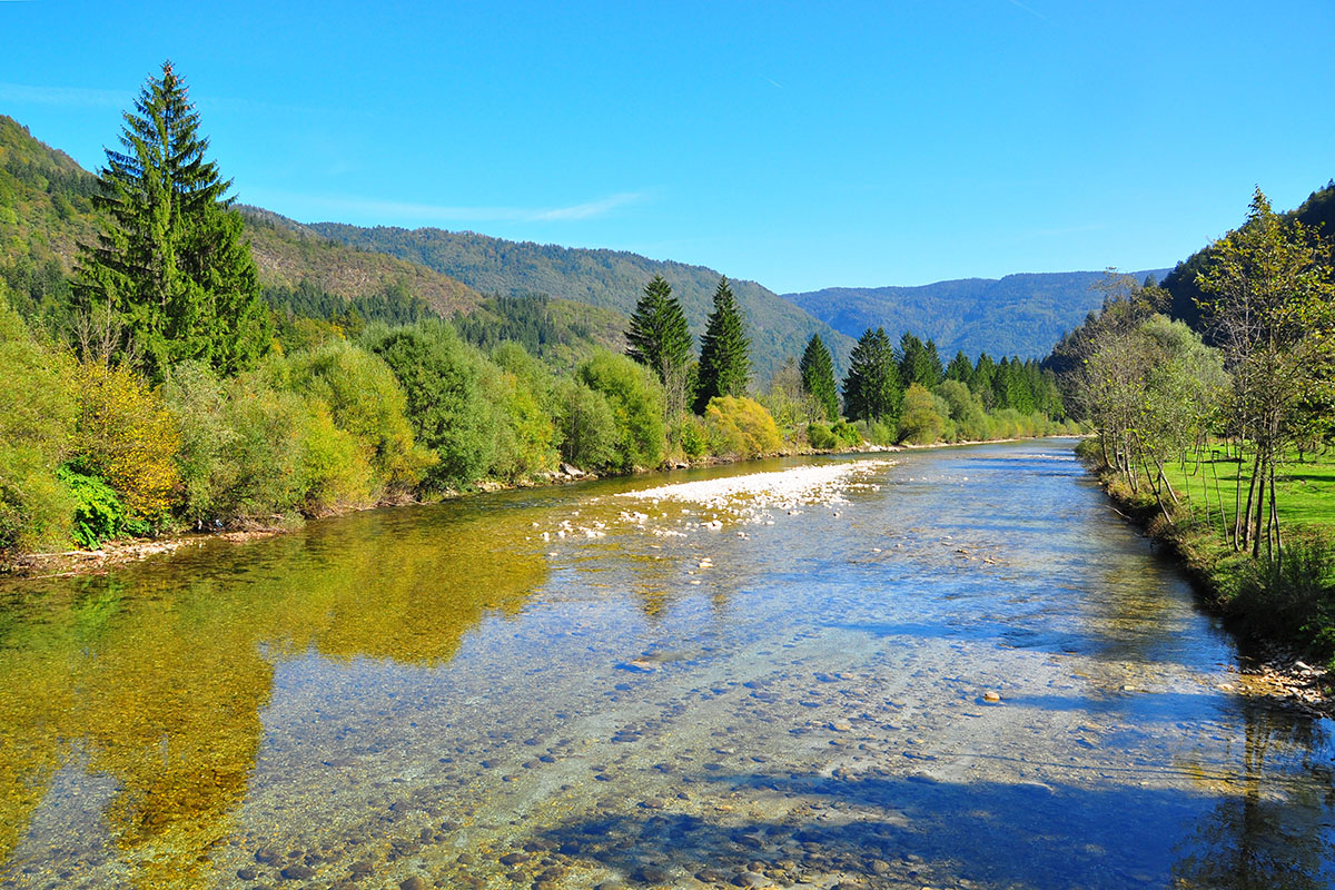 Łowisko rzeczne (woda górska) i jeziorowe w Słowenii, w rejonie Alp Julijskich, oddalone: