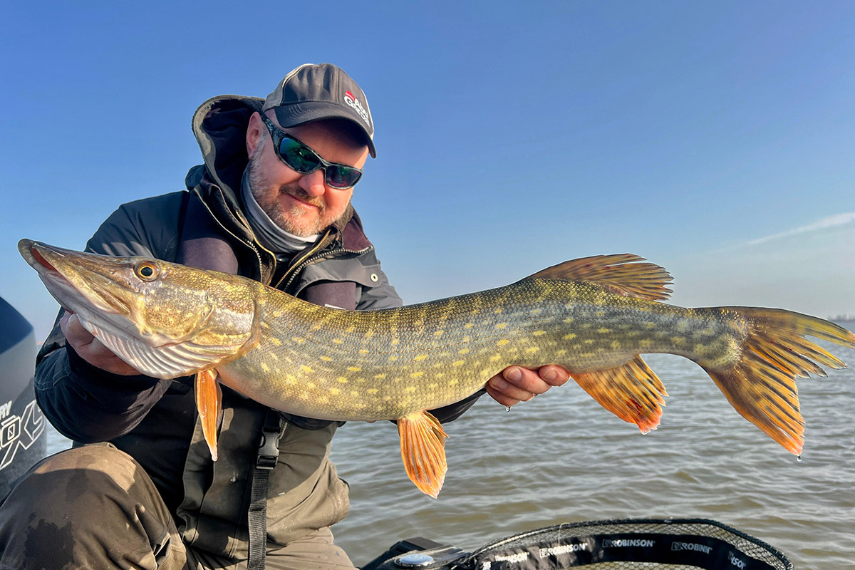 Pragniemy zwrócić Państwa uwagę, iż holenderskie łowiska świetnie nadają się na zimową wyprawę, czyli w okresie kiedy w Polsce nie można lub za bardzo nie ma co łowić. W Niderlandach zimy są łagodne, woda nigdy nie zamarza, a ryby biorą przed nadchodzącym tarłem. Często to właśnie o tej porze roku łupem wędkarzy padają największe drapieżniki. Przed wyjazdem należy jednak zawsze sprawdzić aktualne warunki pogodowe, w szczególności opady. W przypadku obfitego deszczu trwającego kilka dni lub zalegającego w niemieckich górach śniegu woda w łowisku może ulec nadmiernemu zmętnieniu co źle wpływa na brania. W takiej sytuacji postaramy się oczywiście przełożyć wyjazd na inny termin. Z taką nieciekawą sytuacją mieliśmy właśnie do czynienia na naszych ostatnich pobytach w Holandii w styczniu i lutym gdzie Maćkowi towarzyszył Kamil Walicki. Z każdym dniem warunki pogodowe były coraz gorsze (wysoka, zimna woda, deszcze i mocny wiatr), ale mimo to chłopakom udało się co nieco połowić na obu wyjazdach (zdjęcia poniżej). To dowodzi, że nawet w kompletnie fatalnych warunkach można w Holandii liczyć na sensowne ryby!