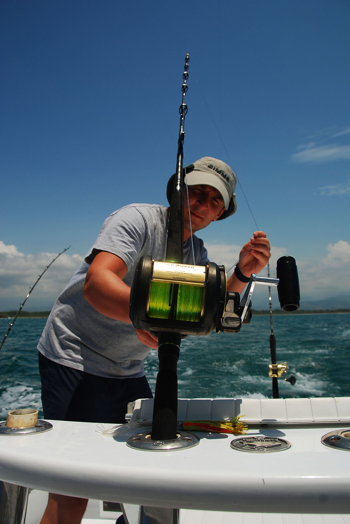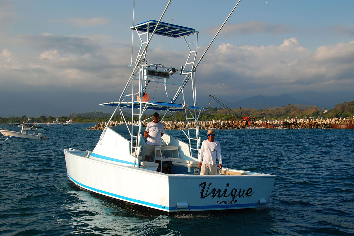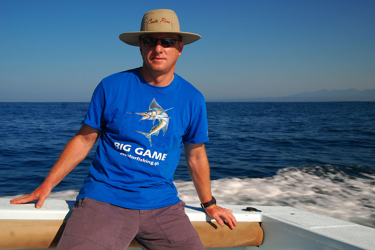 Wędkowałem w Quepos tylko dwa dni w trakcie dłuższej wyprawy do Kostaryki. Zachwyciła mnie ta okolica – częściowo klifowe, wysokie wybrzeże, częściowo płaskie z piaszczystymi plażami. Miasteczko jak z filmów, pełne gorących Latynosów, ale i turystów – głównie z USA. Wieczorne życie skupiało się w licznych barach, gdzie można było pokosztować fantastycznych drinków na bazie rumu, tequili i innych lokalnych alkoholi, a także świeżutkich owoców i ziół. W restauracjach serwowano przede wszystkim dania z ryb i owoców morza, co bardzo mi odpowiadało. Wędkowanie miało dwa oblicza. Pierwszego dnia wędkowaliśmy na trolling, a więc bardziej biernie. Do nas należał jedynie hol zaciętych ryb. Jednak był to wspaniały wypoczynek w słońcu, na falach dość spokojnego (zgodnie z nazwą) Pacyfiku. Udało nam się spotkać na morzu i delfiny, i piękny okaz morskiego żółwia.
