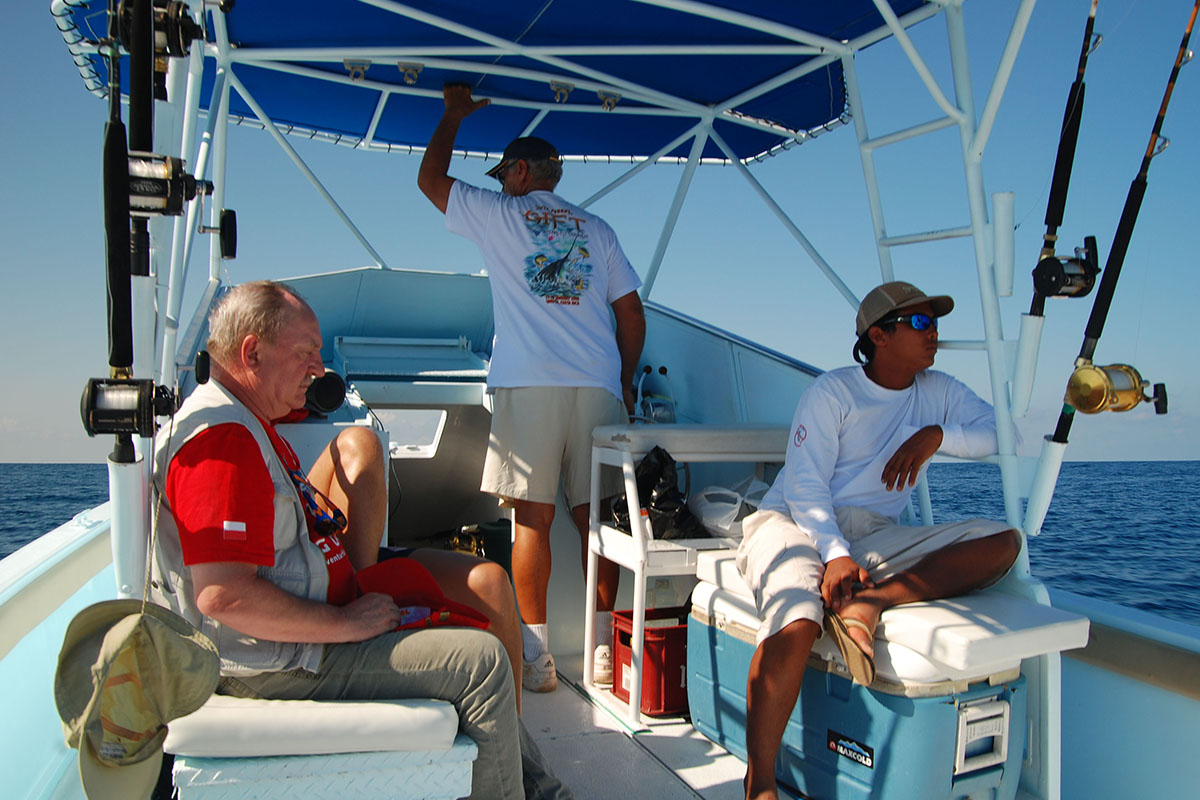 Zapewniamy usługi sprawdzonych przewodników wędkarskich dysponujących wysokiej klasy łodziami (maksymalnie 4-5 wędkarzy plus 2 osoby załogi). W trakcie wędkarskiej sesji, która trwa zazwyczaj ok. 8 do 10 godzin, serwowany są lunch i bezalkoholowe drinki.