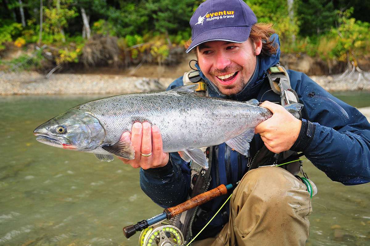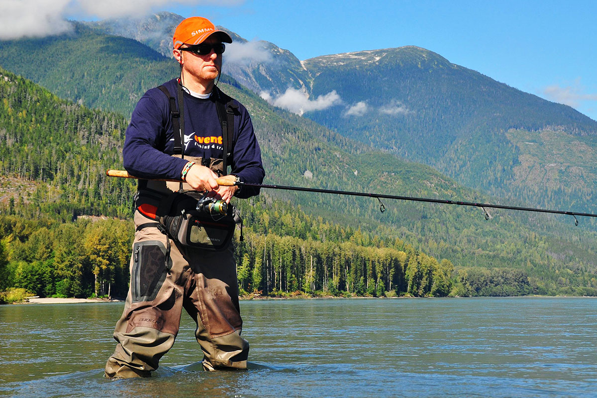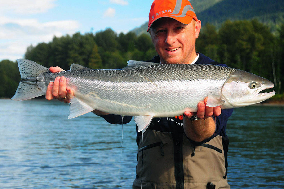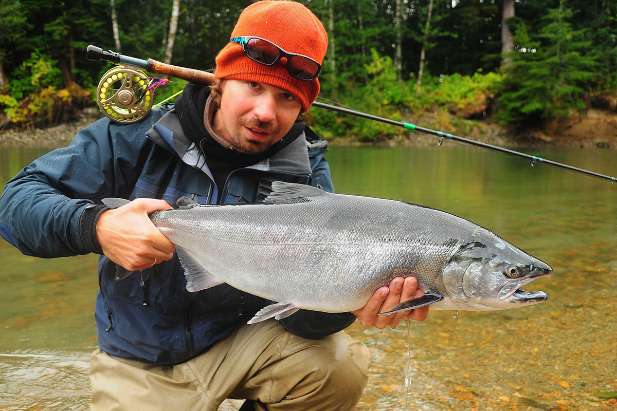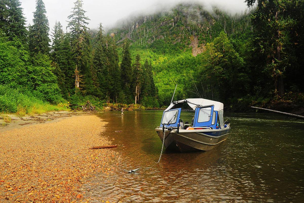 Łososie i steelheady łowi się z brzegu, a czasem również z łodzi. Łódź jest jednak niezbędna, aby dotrzeć rzeka na najlepsze stanowiska ryb, dokąd nie ma zazwyczaj dojścia z brzegu (lub dojazdu samochodowego). Konieczne wodery. Halibuty w morzu łowi się z łodzi.