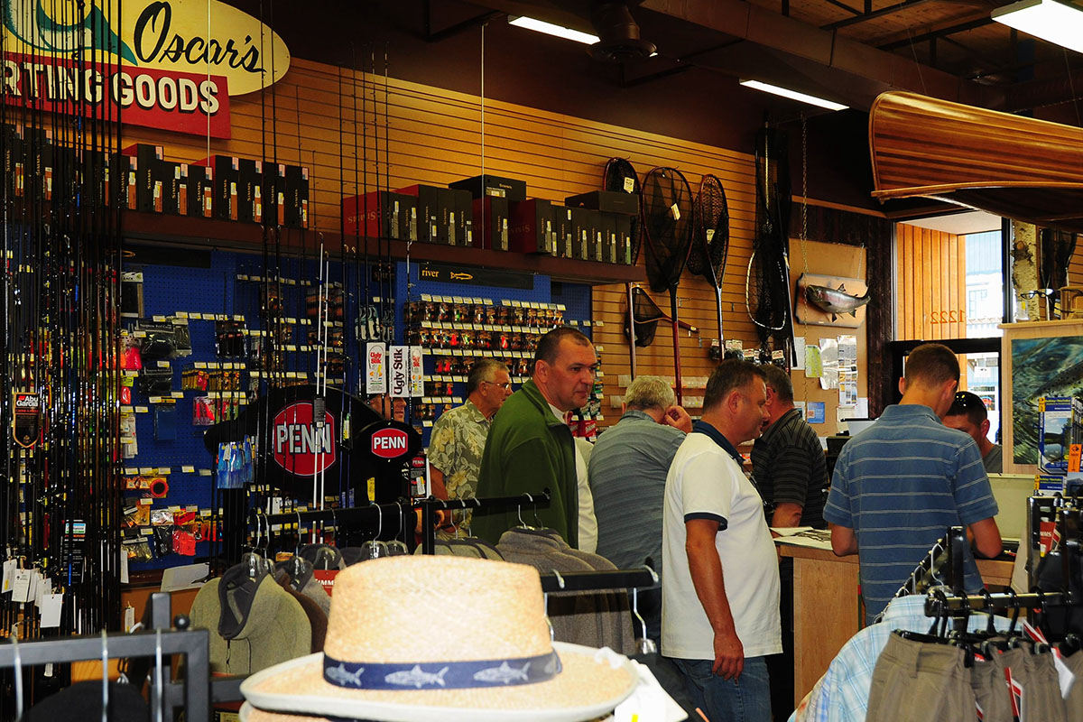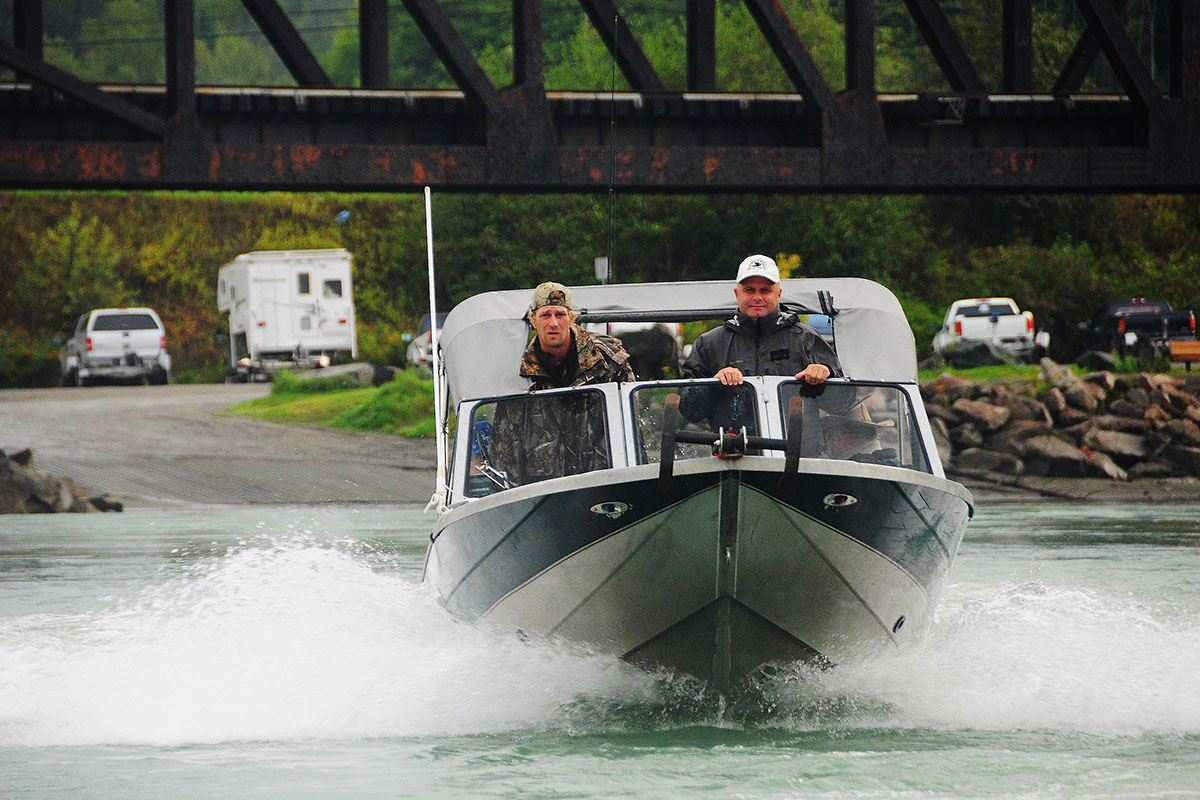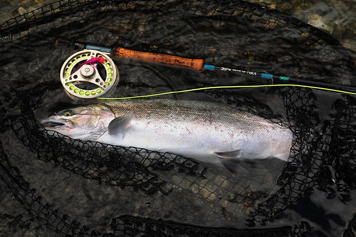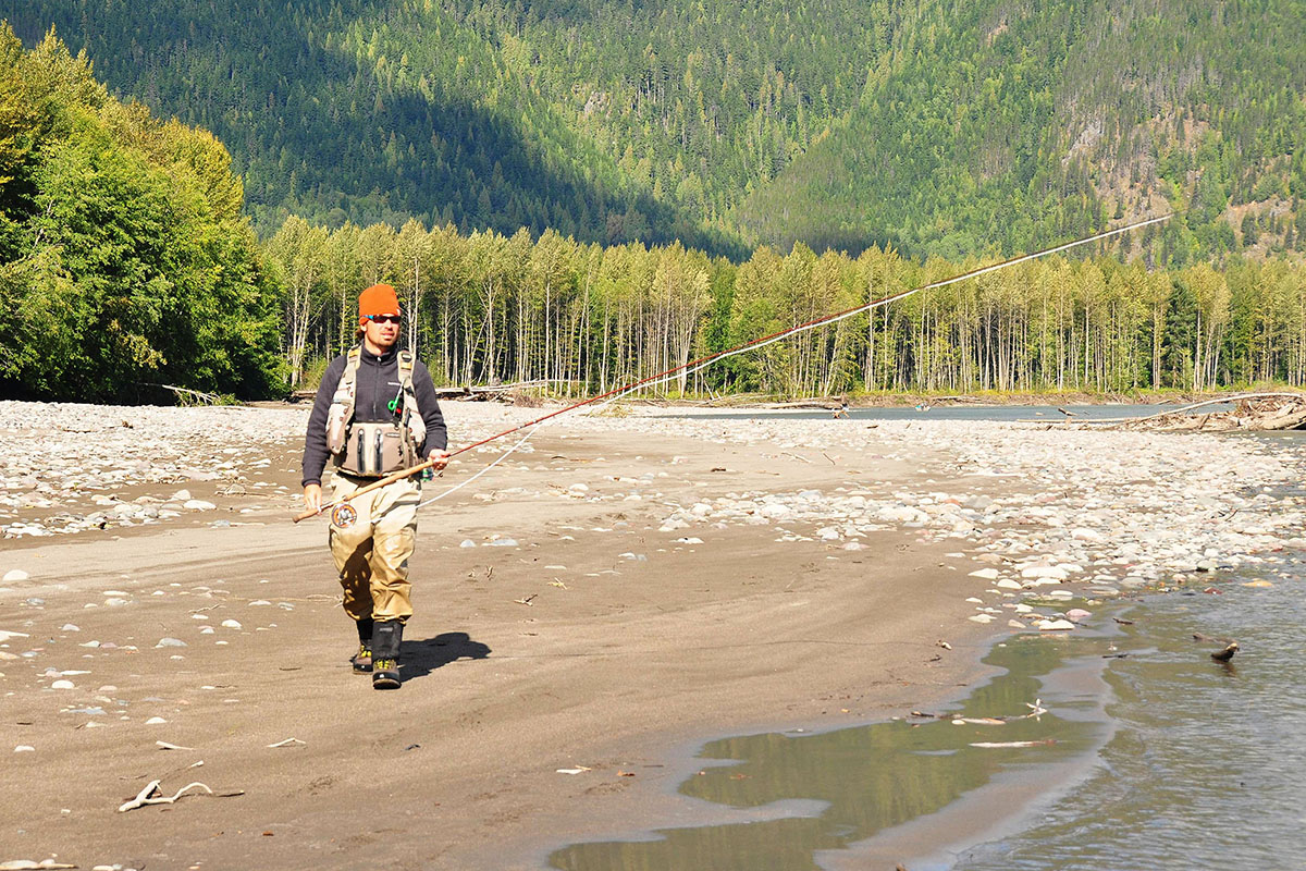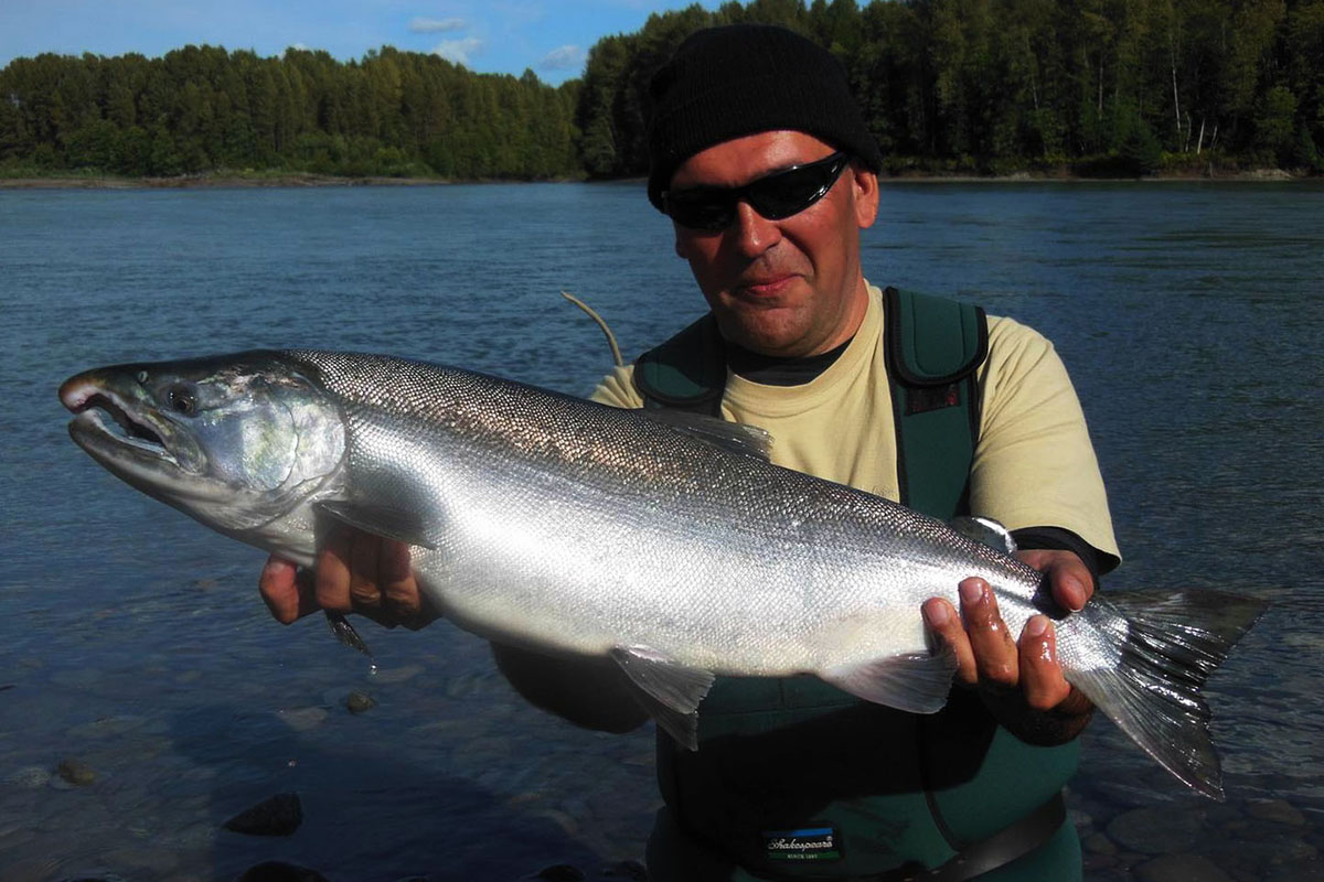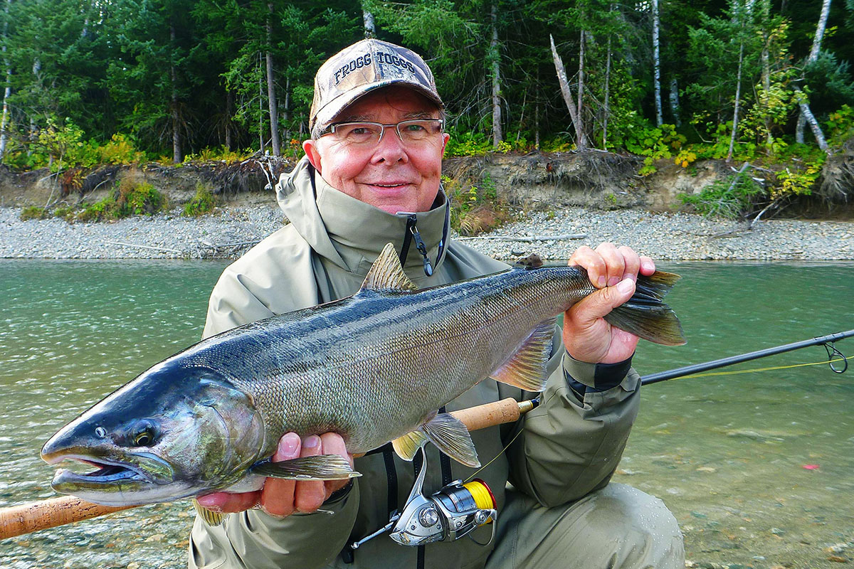 Łososie i steelheady łowi się z brzegu, a czasem również z łodzi. Łódź jest jednak niezbędna, aby dotrzeć rzeka na najlepsze stanowiska ryb, dokąd nie ma zazwyczaj dojścia z brzegu (lub dojazdu samochodowego). Konieczne wodery. Halibuty w morzu łowi się z łodzi.