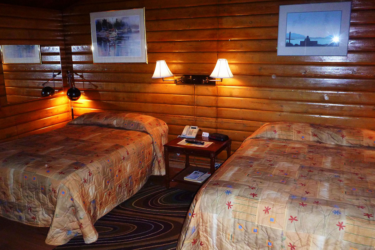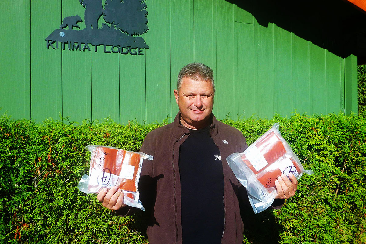 Nasi goście kwaterują w komfortowych domkach na terenie ośrodka turystycznego, położonego na obrzeżach miasteczka Kitimat. W domkach 2-osobowe apartamenty z sypialną, kuchnią (ze stołem jadalnym) i łazienką (ciepła woda, prysznic). Na terenie ośrodka znajduje się stołówka, w której serwowane mogą być śniadania i obiadokolacje. Na życzenie gospodarz może uwędzić bądź przyrządzić złowione ryby, a także zaserwować na kolację świeże kraby. Możliwe jest również wyżywienie we własnym zakresie. Na terenie miasteczka jest kilka sklepów spożywczych, są też restauracje.