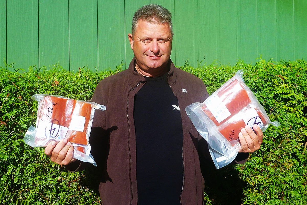 Staszek to twardy góral z Rabki. Nie certoli się więc z rybami, tylko je łowi. Pokazał nam to już na tym wyjeździe wielokrotnie, wyciągając z wody, jak gdyby nigdy nic, rekordowe kiżucze. Ze steelheadami też dał nam szkołę. Pewnego dnia na Skeenie, zaraz po tym, gdy dopłynęliśmy łodzią na obiecującą prostkę, Staszek zamiast zacząć natychmiast łowić usiadł na wędkarskim foteliku, przegryzł sandwicza i postanowił na początek... uciąć sobie drzemkę! A my w tym czasie jak opętani biczowaliśmy wodę spinningami, muchówkami. Bez efektu.