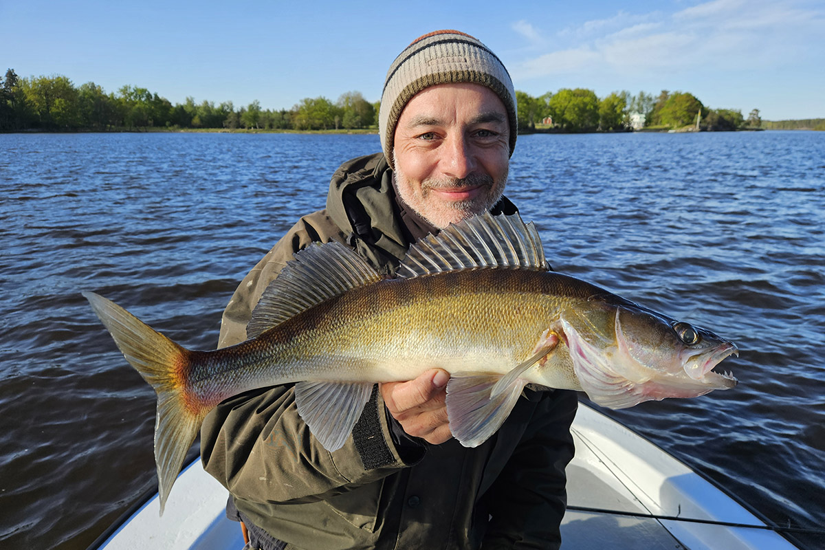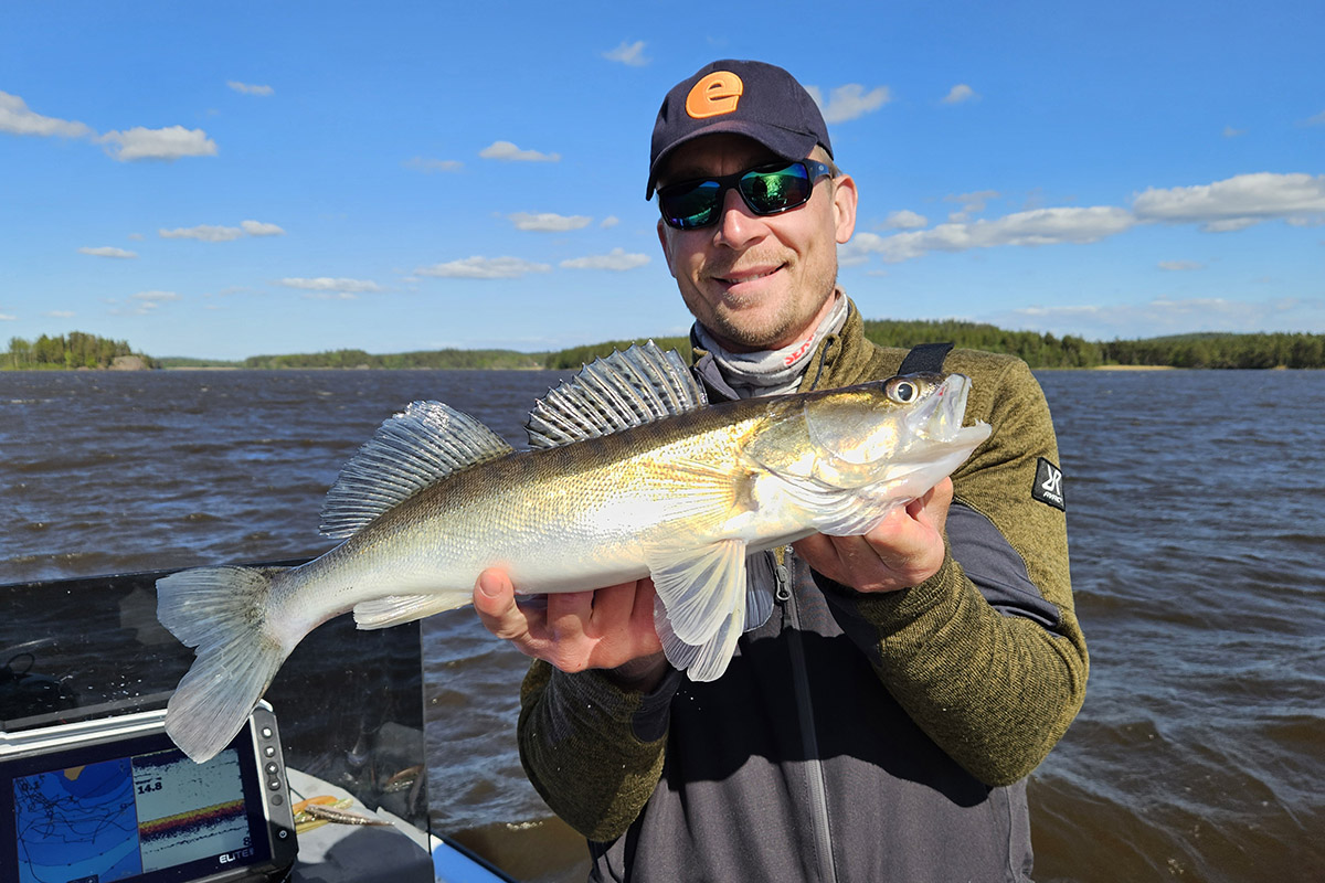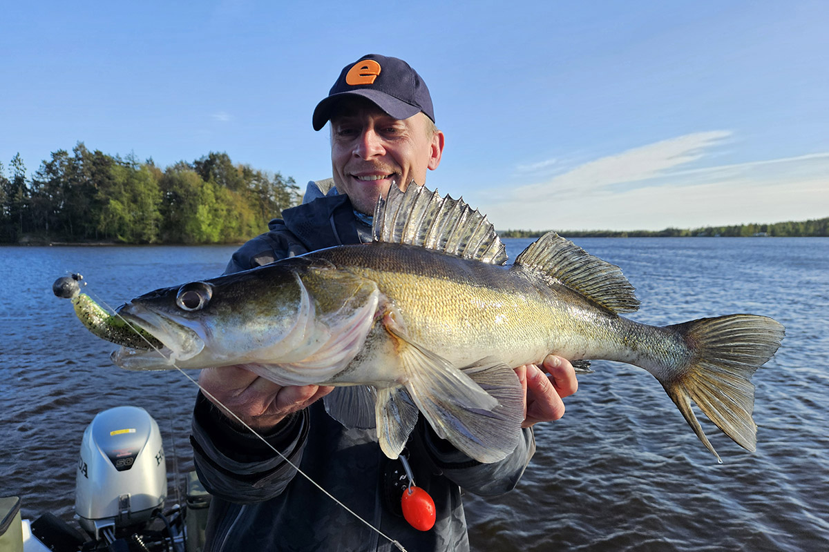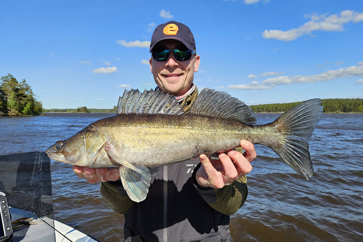 Nasz studyjny pobyt na Vanderydsvattnet odbyliśmy w połowie maja 2025. Przez kilka dni wędkowaliśmy głównie na wodzie Barona, ale oczywiście dla porównania opłynęliśmy też ogólnodostępną część jeziora. Głównym celem był sandacz i na tym gatunku się skupiliśmy. Ryb w jeziorze nie brakuje. Blaty, stoki, okolice wysp, momentami wręcz wybrukowane były sandaczem oraz ławicami drobnicy, co doskonale było widać na sonarze. Ryby oczywiście nie żerowały przez cały czas, ale kiedy następował moment brań, co chwilę nasze zestawy sygnalizowały „elektryczne kopnięcia” mętnookich. Przez niecałe trzy dni udało nam się złowić około setkę tych pięknych ryb. Zabrakło okazów, ale z pewnego źródła wiemy, że takich też w Vanderydsvattnet nie brakuje. Duże sandacze, okonie i ponadmetrowe szczupaki, są jak najbardziej w zasięgu wędkarzy. Dla wszystkich, którzy na wyprawach szukają prywatności, spokoju, ciszy i bardzo rybnej wody, jezioro Vanderydsvattnet to będzie strzał w 10.