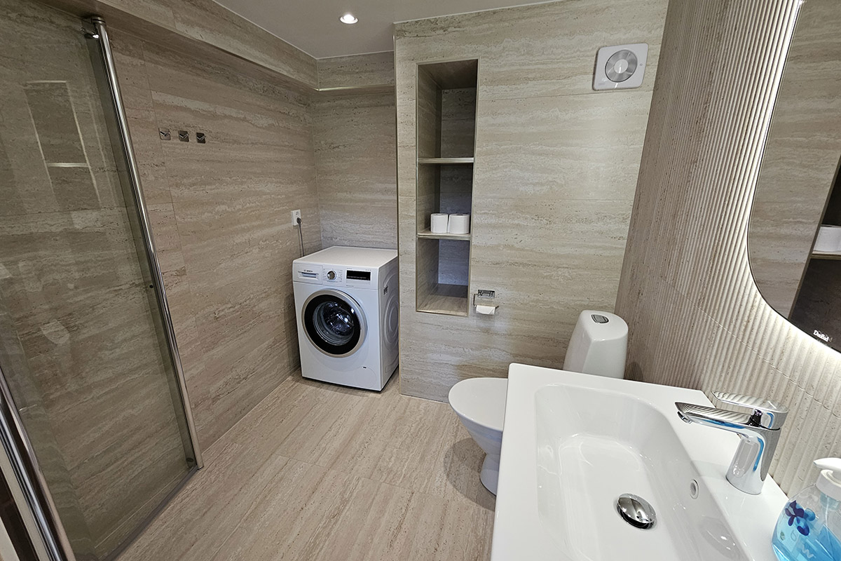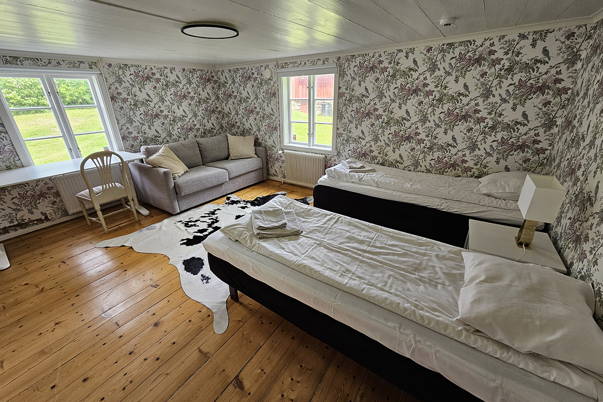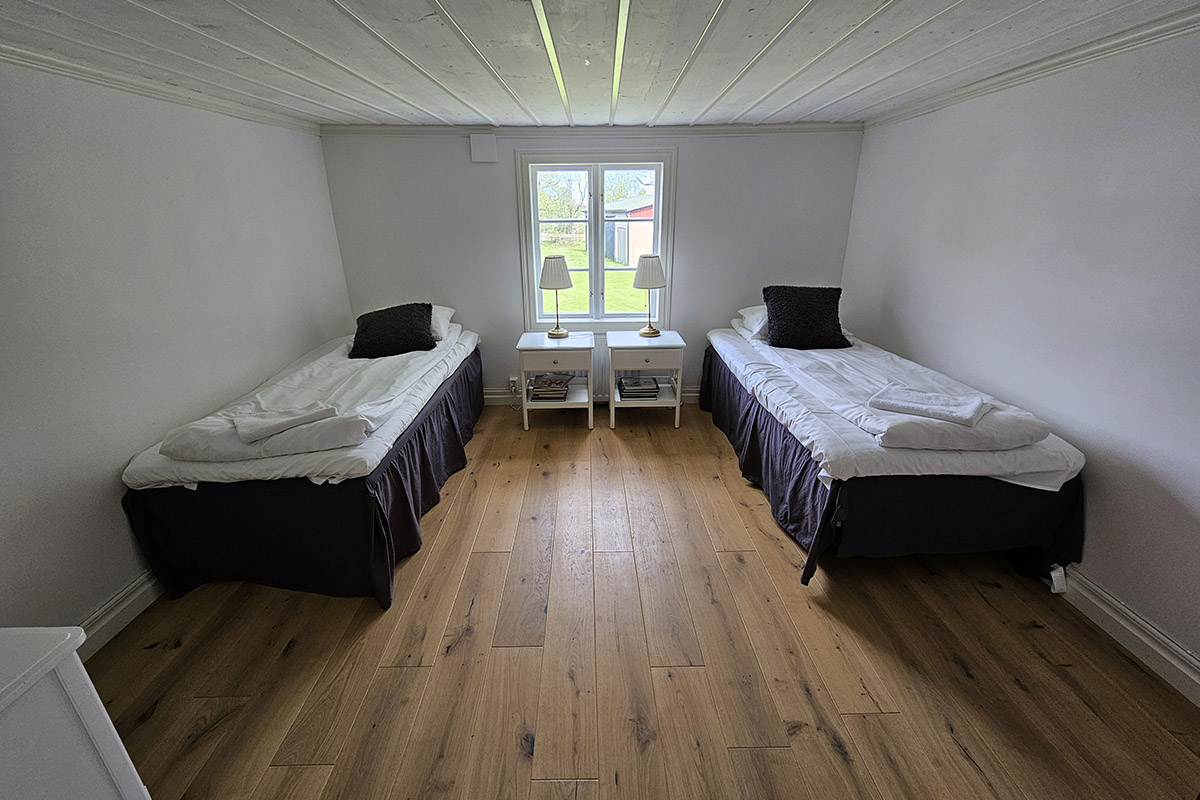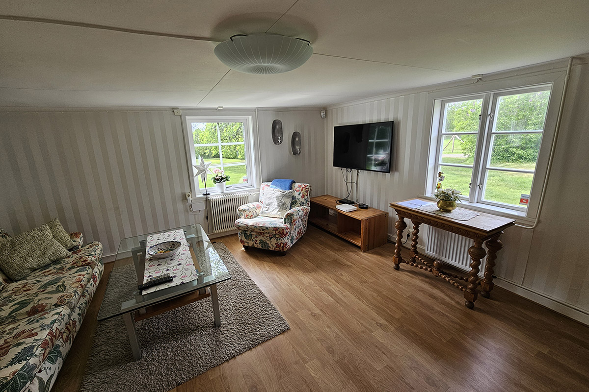Do Państwa dyspozycji oddajemy klasyczny, stary szwedzki dom (parter) dla 4-6 osób. Duży, przestrony, z 2 sypialniami (przechodnie), w pełni wyposażoną kuchnią z częścią jadalnianą, świeżo odnowiona łazienka z prysznicem i WC oraz spory salon. Ważne, sufit w domku jest dość nisko, nie wszędzie właścicielowi udało się go podnieść podczas remontu. Najniżej jest w kuchni, osoby o wzroście 190 cm będą ocierały czupryną.
