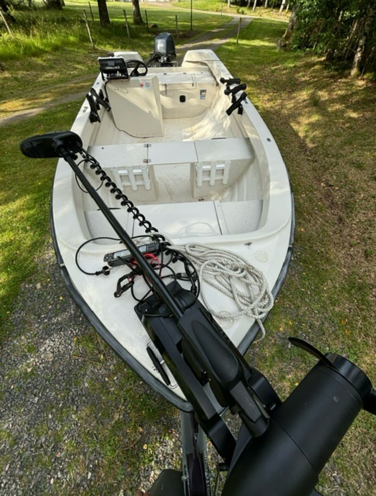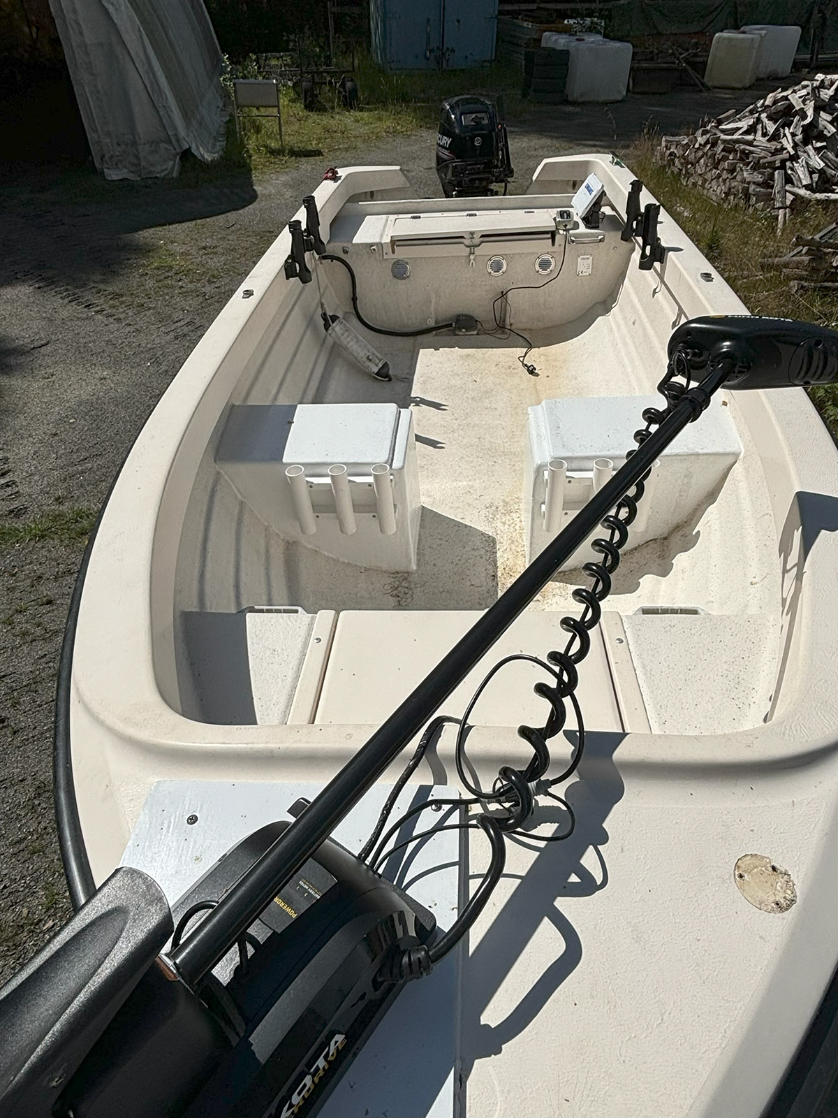 Łodzie o dlugosci 4.60m “Biala” z silnikiem Honda 20hp sterowana z konsoli. “Zielona “ z silnikem Mercury 25hp z rumplem. Łodzie wyposażone w silniki zaburtowe „Minn Kota powerdrive” 55lbs z dodatkowym akumlatorem i przenośną ładowarką . Obie łodzie wyposażone w sonary Lowrance Elite FS9 z mapą jeziora .